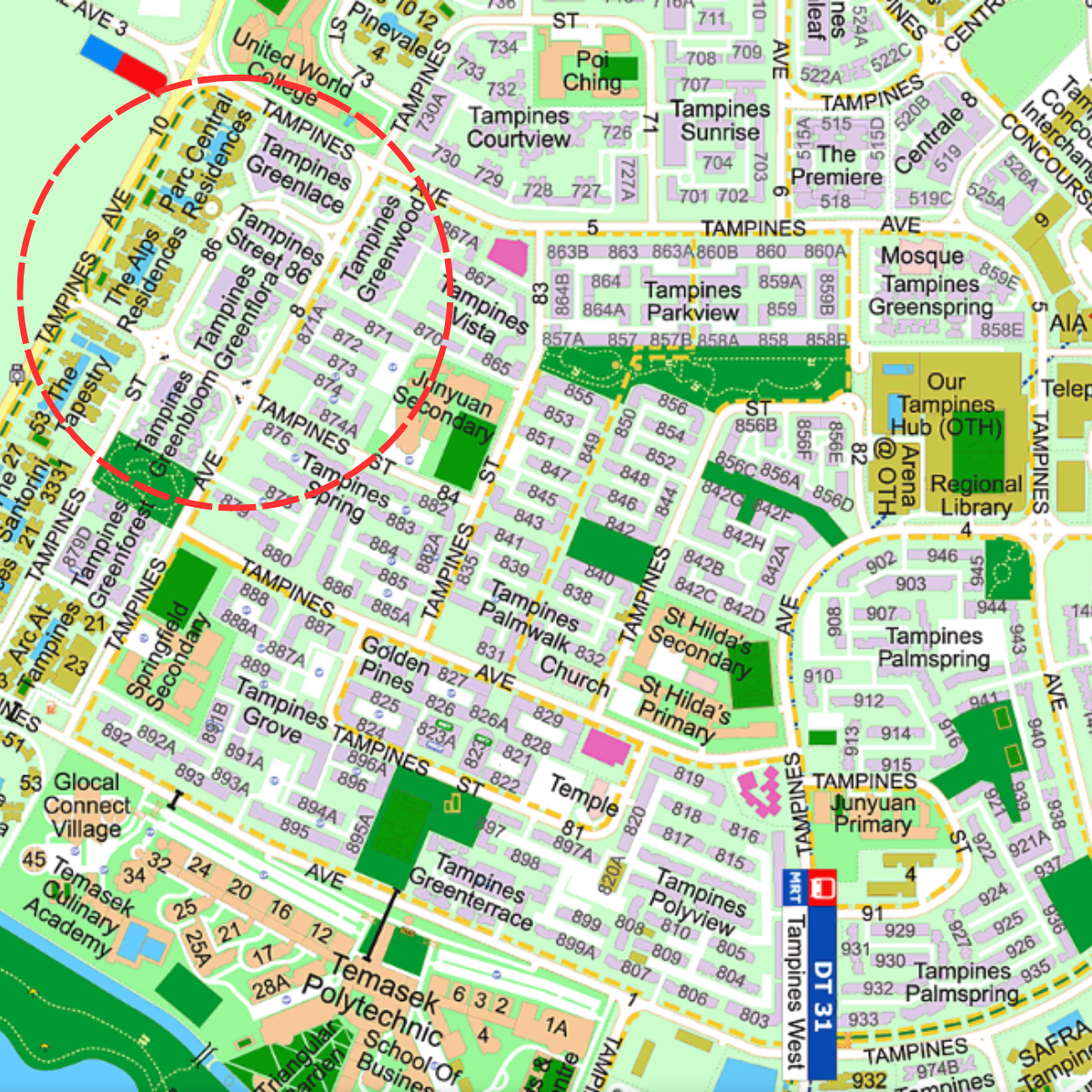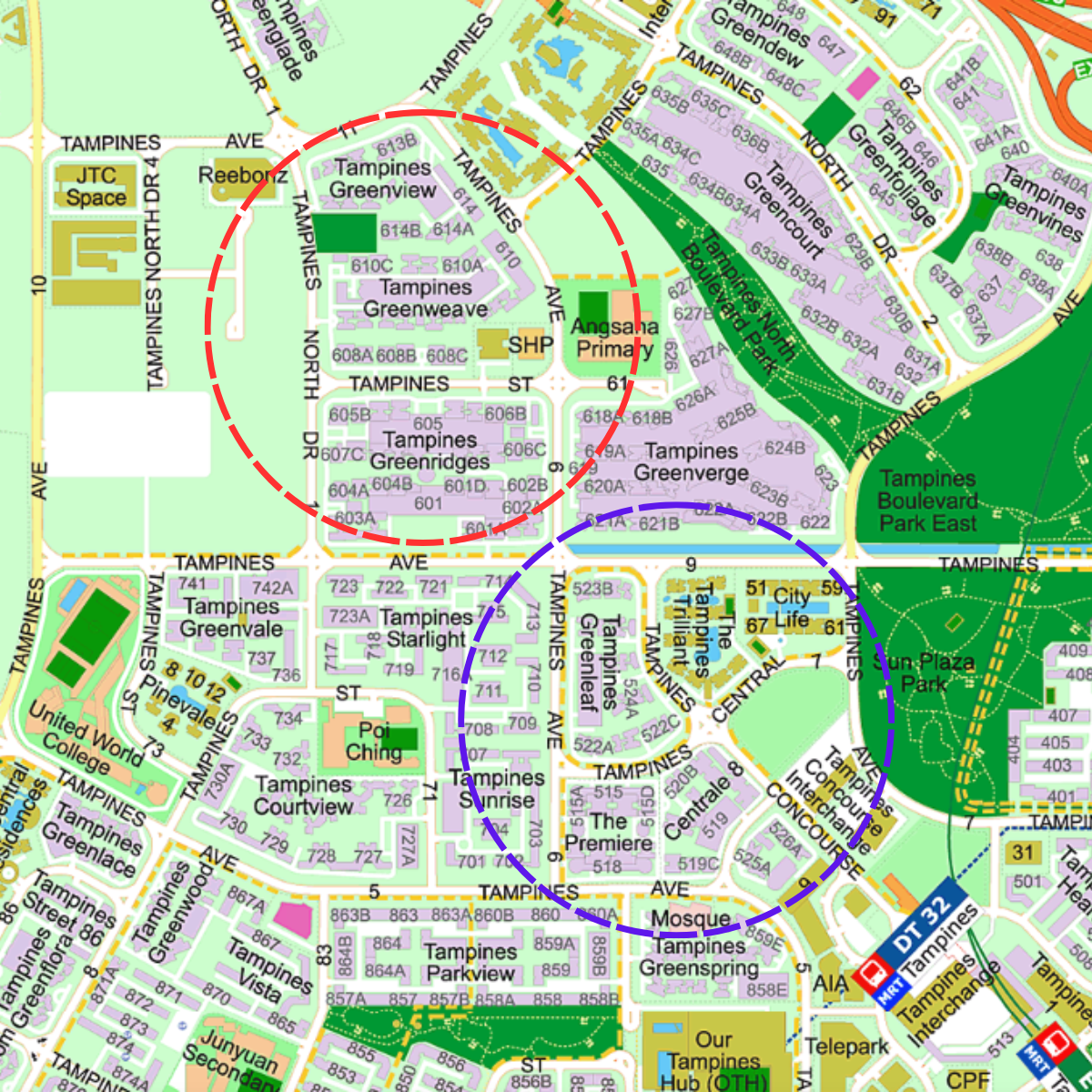 What becomes noticeable when you look at the broader Tampines housing landscape is that many newer developments are not located within this central zone.